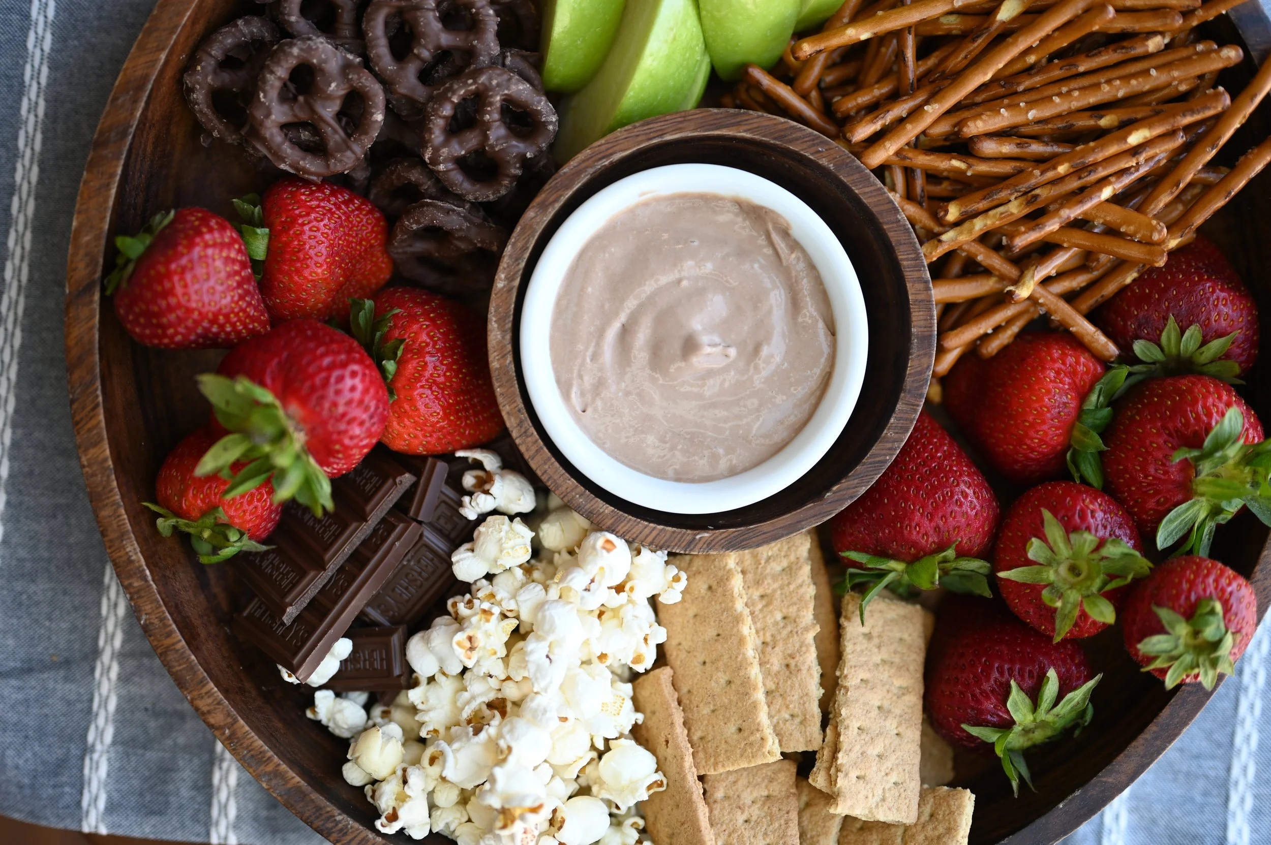Creamy chocolate ganache dip is a reimagined southern family favorite ready to sweeten up any fruit platter at your next gathering. This creamy silky smooth treat is great dipped with fruit, pretzels, cookies, and even works great as a cupcake topper.